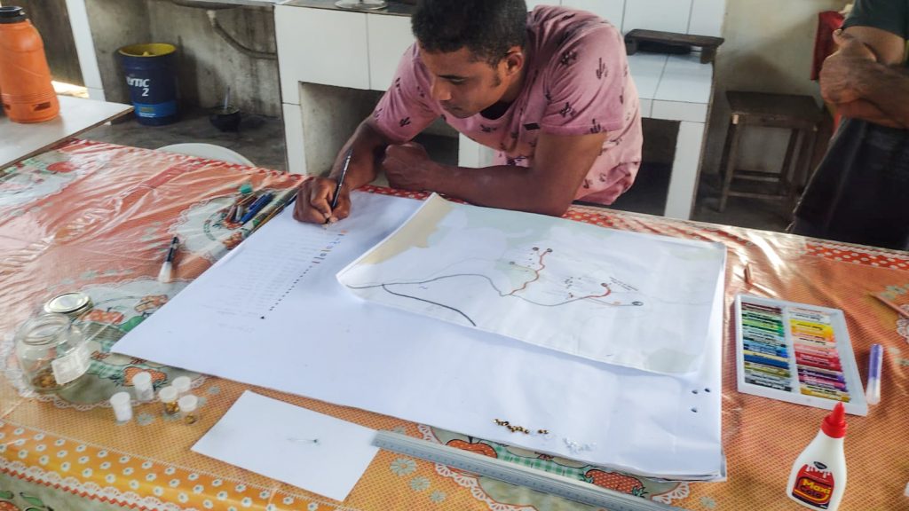 A oficina de cartografia social possui o objetivo de compreender o acesso à água em cada comunidade, atingida pelo complexo Minas-Rio,e as possíveis alterações ocorridas ao longo dos anos. Esse método valoriza os conhecimentos dos participantes e foca na autonomia deles durante o processo